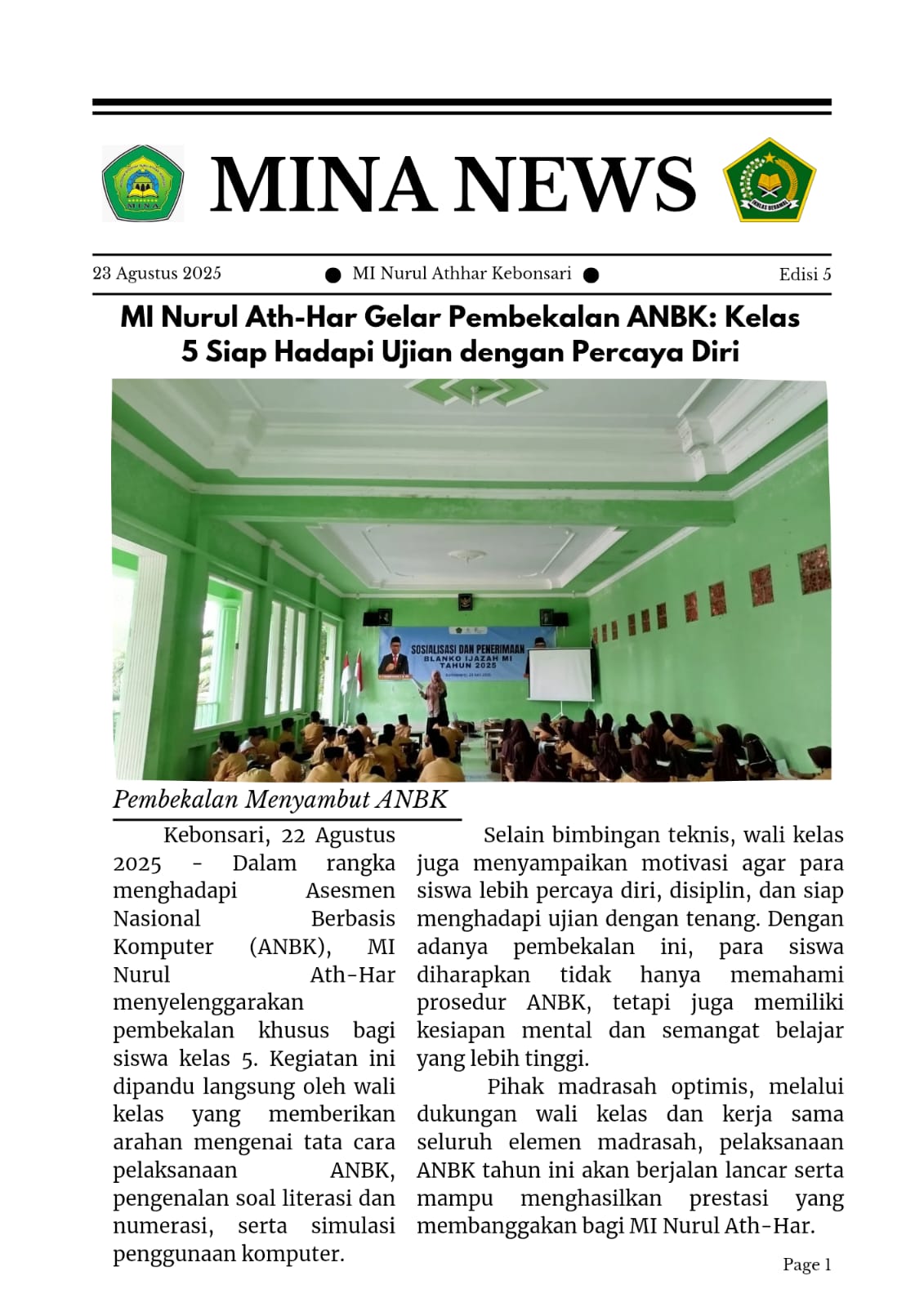 MI Nurul Athhar Gelar Pembekalan ANBK: Kelas 5 Siap Hadapi Ujiang dengan Percaya Diri