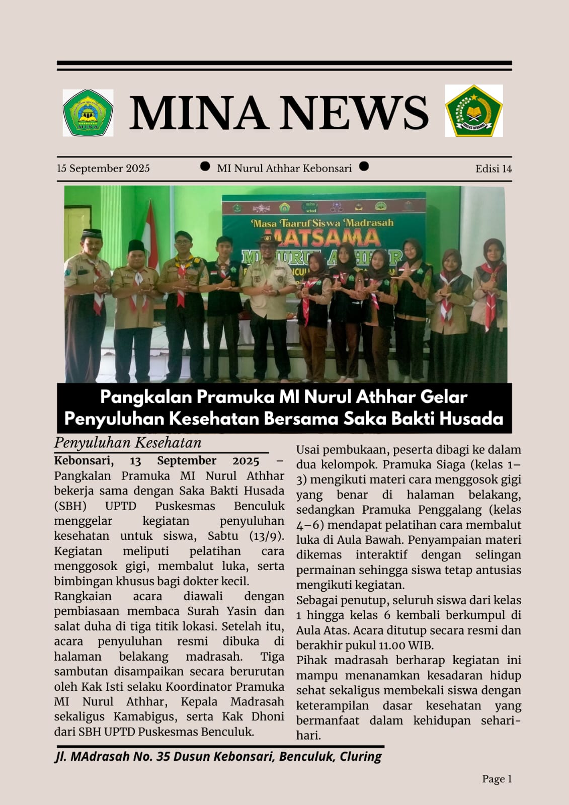 Pangkalan Pramuka MI Nurul Athhar Gelar Penyuluhan Kesehatan Bersama Saka Bakti Husada
